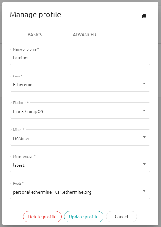Select the platform you want to run this miner profile on (eg. `Linux / mmpOS`).