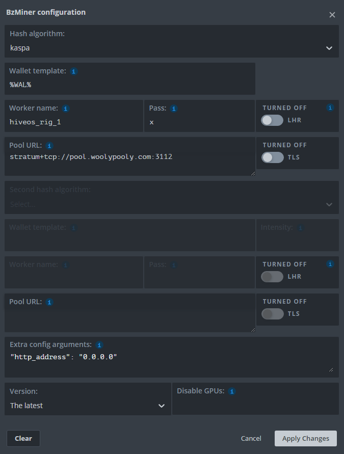 Click Apply Changes, then deploy to the rigs you wish to mine Kaspa on.