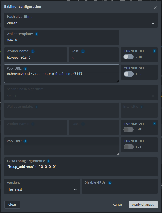 bzminer -a olhash -w 000000 -p ethproxy+ssl://us.extremehash.net:3443